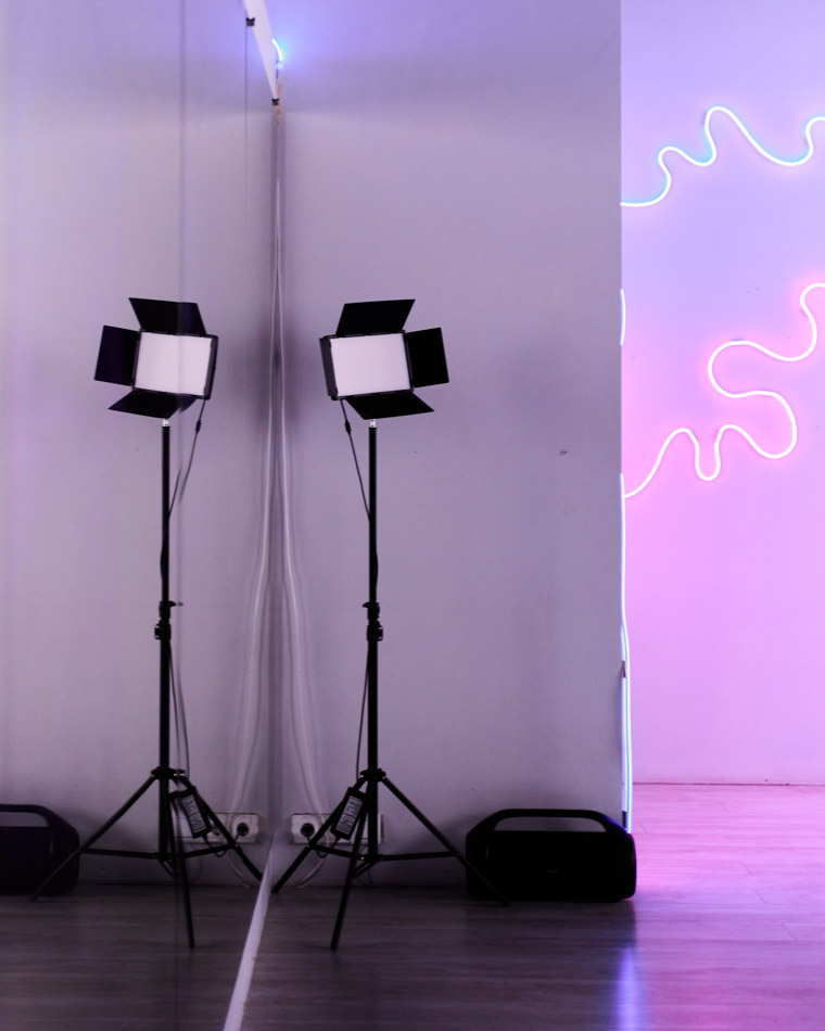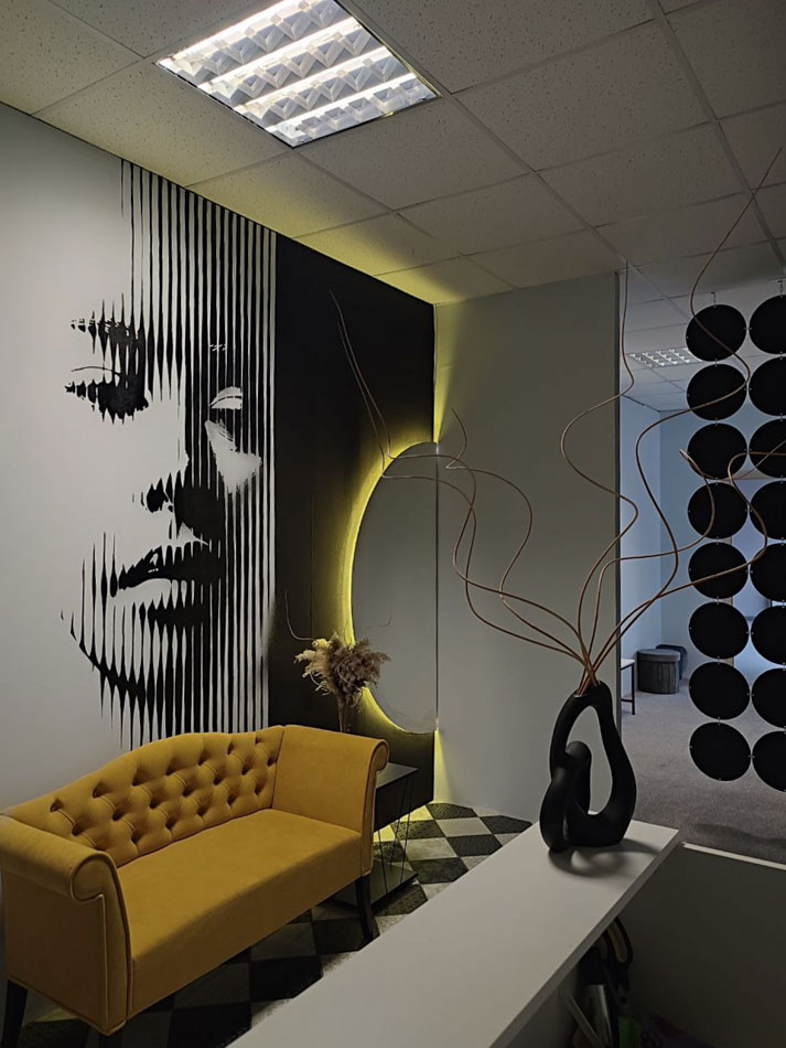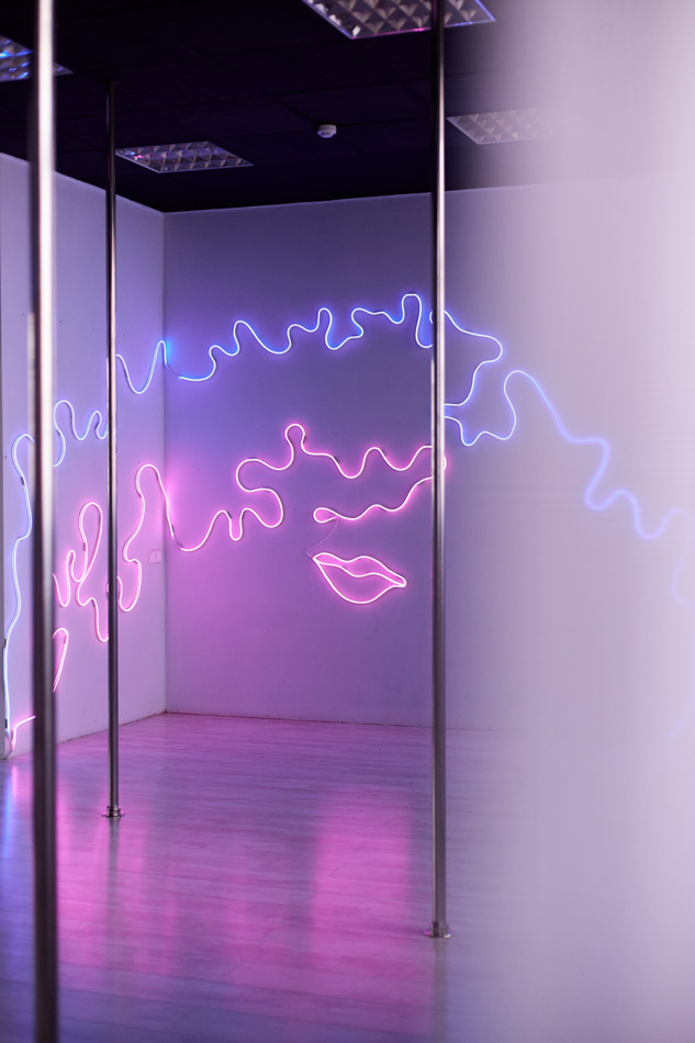 9 пилонов, 130 кв. м., огромные зеркала и панорамные окна.